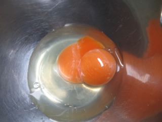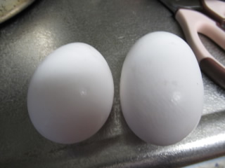 大きなほうは割ってみたら双子の黄身でした。