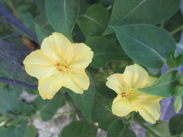 昼間は花を閉じてしまっているオシロイバナ。