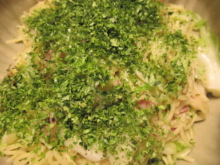今夜は、塩味の焼きそば。