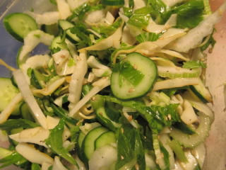 セロリときゅうりとイカの燻製のマリネサラダ。