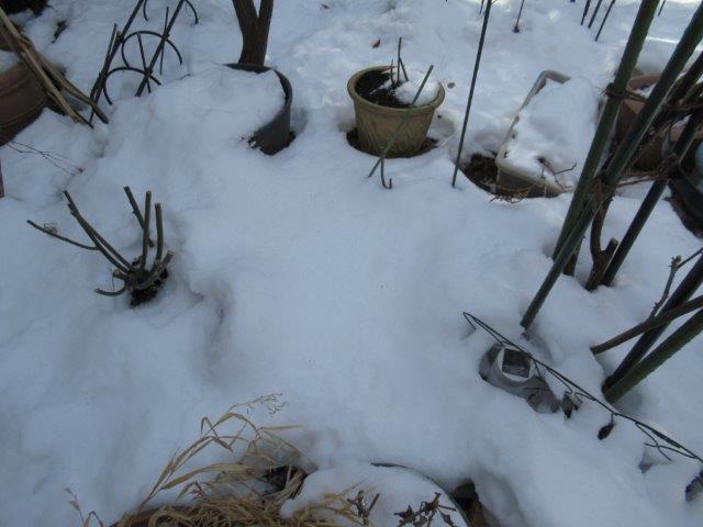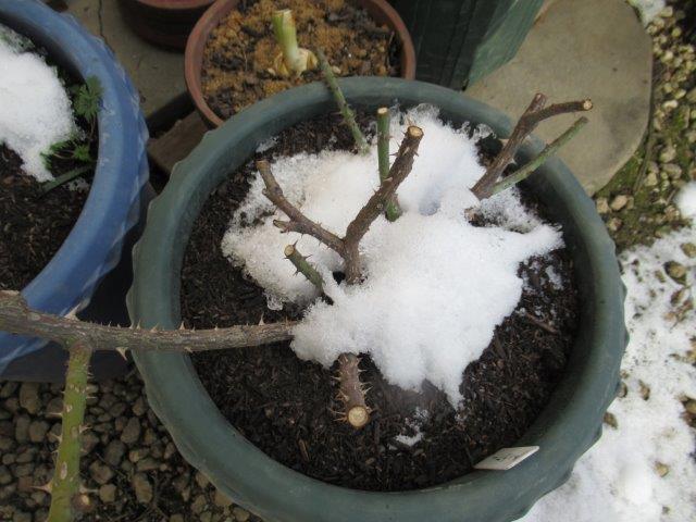あまりに低温が続くので、鉢薔薇は日当たりが良い場所に移動。