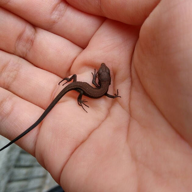 車を出そうとしていたら、車の下にカナヘビがおりましてな。。。
