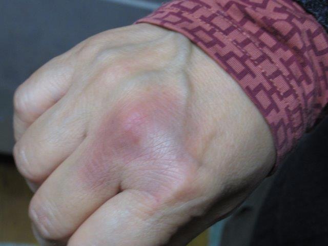 「ぶつけたり」というのは、職場で手をしたたかにぶつけまして。。。