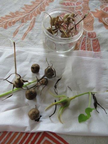 絞り青と白は種がたくさんできていて、蕾がなく花が望めないので、