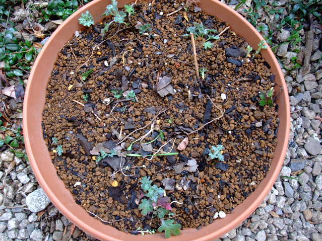 芝桜がはびこっていたところに芽を出していた菊をとって、