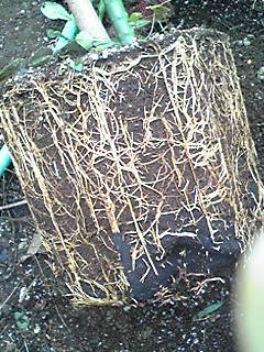 再生用剤を混ぜておいた古い土を所定の場所に移動。