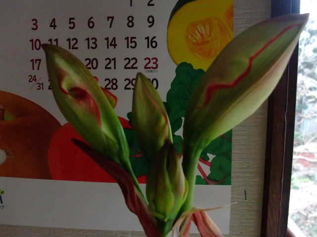 アマリリス、蕾変化中。