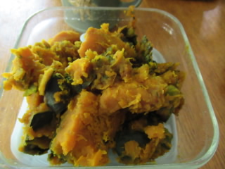 ボタボタ落ちている、未熟の柿の実を拾い集め、