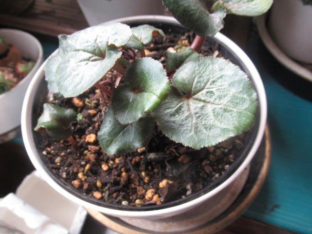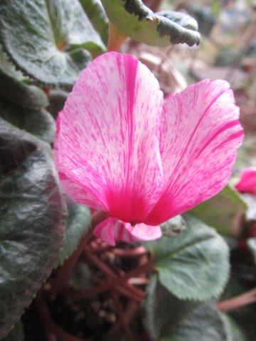 夏越しシクラメン、もう1鉢がやっと咲きました。