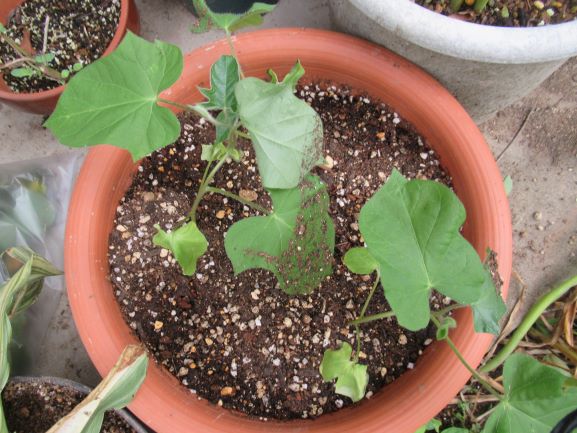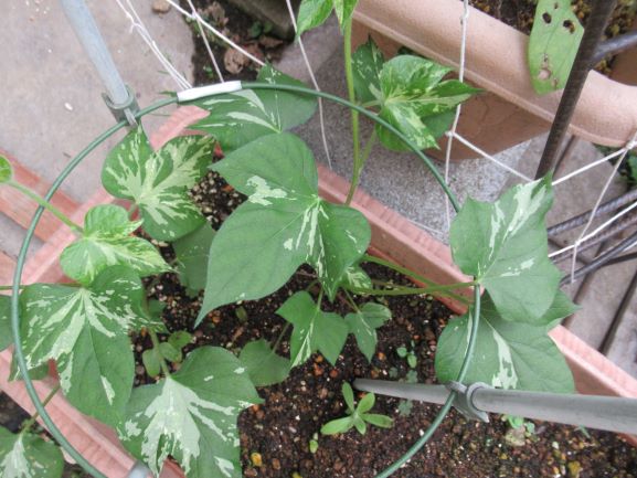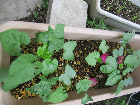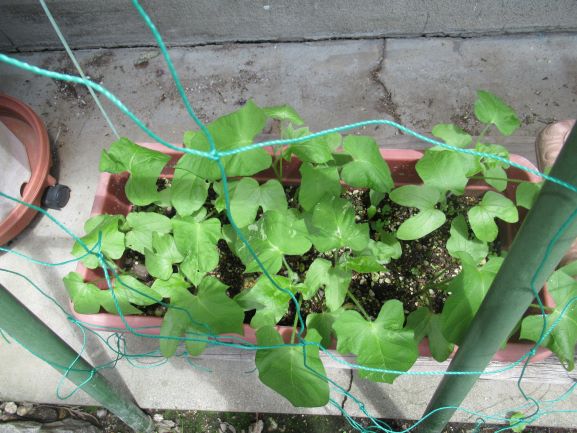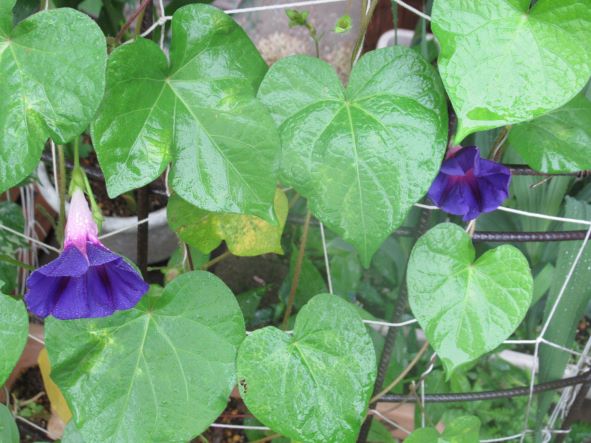 朝顔はつるを伸ばしていて、徒長なのか本来の姿なのかわかりません。