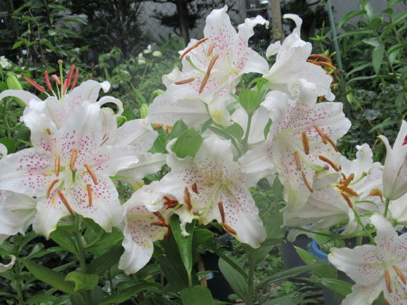 白い百合が咲き始めています。